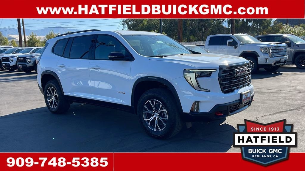 Summit White 2026 GMC Acadia AT4 AWD 8-Speed Automatic 2.5L DOHC AWD, Forest Storm W/Mahogany Accents Cloth, Apple CarPlay/Android Auto, Auto High-beam Headlights, Bose Premium 12-Speaker System w/Sub-Woofer, Exterior Parking Camera Rear, Front dual zone A/C, Garage door transmitter, Heated front seats, Heated steering wheel, Power Liftgate, Preferred Equipment Group 4SB, Radio: 15 Premium GMC Infotainment System, Rear air conditioning, SiriusXM w/360L, Wheels: 18 x 8 Dark Machined Aluminum.