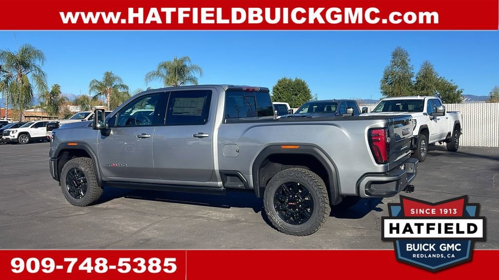 Sterling Metallic 2026 GMC Sierra 3500HD AT4 4WD 10-Speed Automatic Duramax 6.6L V8 Turbodiesel 10-Speed Automatic, 4WD, Jet Black With Kalahari Accents Leather, AT4 Preferred Package, AT4 Premium Plus Package, Auto-Dimming Inside Rearview Mirror w/Camera, Bed View Camera w/2 Trailer Camera Provisions, Bose Premium 7-Speaker Sound System, Exterior Parking Camera Rear, Following Distance Indicator, Forward Collision Alert, Front dual zone A/C, Front Pedestrian Braking, Fully automatic headlights, GMC Premium 13.4 Diagonal Information Display, Gooseneck/5th Wheel Prep Package, HD Surround Vision, Heated Driver & Front Outboard Passenger Seats, Heated rear seats, Heated steering wheel, Hill Descent Control, LED Cargo Area Lighting, LED Smoked Amber Roof Marker Lamps, Multicolor 15 Diagonal Head-Up Display, Off-Road High Clearance Step (LPO), Power Sliding Rear Window w/Defogger, Power Sunroof, Premium audio system: Premium GMC Infotainment System, Radio: AM/FM w/Premium GMC Infotainment System, Rain sensing wipers, Rear Cross Traffic Alert, Spray-On Pickup Bedliner w/GMC Logo, Technology Package, Trailer Camera Provisions, Trailer Side Blind Zone Alert, Universal Home Remote, Ventilated Driver & Front Passenger Seats, Wheels: 20 High Gloss Black 8 Spoke Aluminum, Wireless Charging, X31 Off-Road Package.